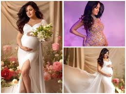 गाउन में बेबी बंप के साथ पोज दिए युविका चौधरी ने