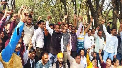 बीजेपी दफ्तर के सामने स्कूल संचालकों का धरना, मान्यता नियमों में बदलाव की मांग को लेकर प्रदर्शन